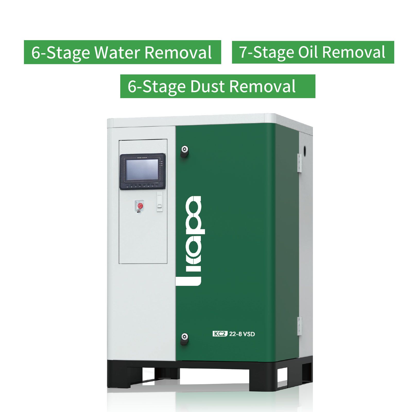 6-stage water removal, 7-stage oil removal, and 6-stage dust removal ensure absolute reliability.